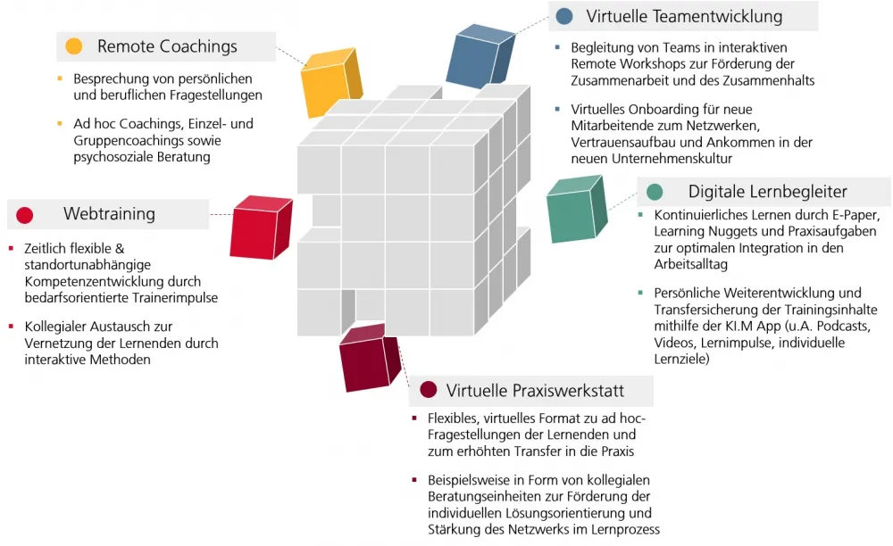 Unsere zeitlich flexible & standortunabhängige Kompetenzentwicklung durch bedarfsorientierte Trainerimpulse. Durch interaktive Methoden wird außerdem der kollegiale Austausch Ihrer Mitarbeitenden gefördert.